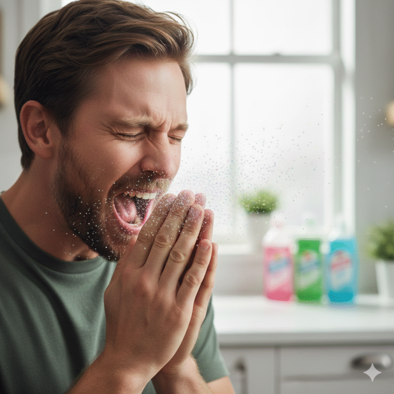 •Compuestos Orgánicos Volátiles (COVs): Muchos limpiadores contienen COVs que se evaporan a temperatura ambiente, irritando las vías respiratorias. En niños con asma o en mascotas con sensibilidad respiratoria, esto puede desencadenar crisis o problemas crónicos.