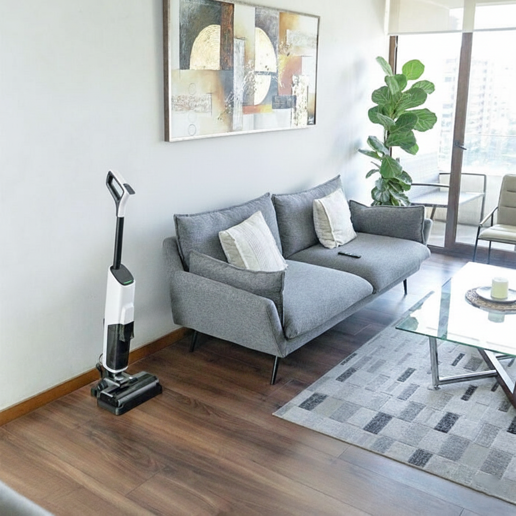 Su sistema de doble acción aspira y trapea al mismo tiempo, dejando el suelo impecable a la primera. Con potencia de succión optimizada y flujo de agua controlado, no arrastra la mugre: la borra. Así de simple.