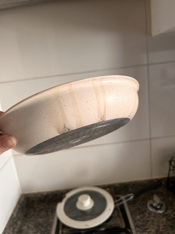 Me encantaron sin embargo creo que para cocina a fuego es complejo porque el primer uso se me derramó un poco de líquido por el lado y no me di cuenta. Luego de eso se me mancharon (compré las color crema) 😭😭 me quiero morir porque fue el primer uso!