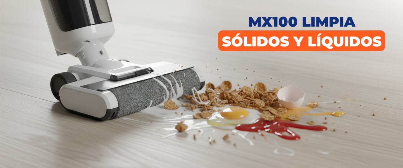 No importa el desastre, la MX100 lo puede limpiar. Deja el piso limpio y previene manchas.